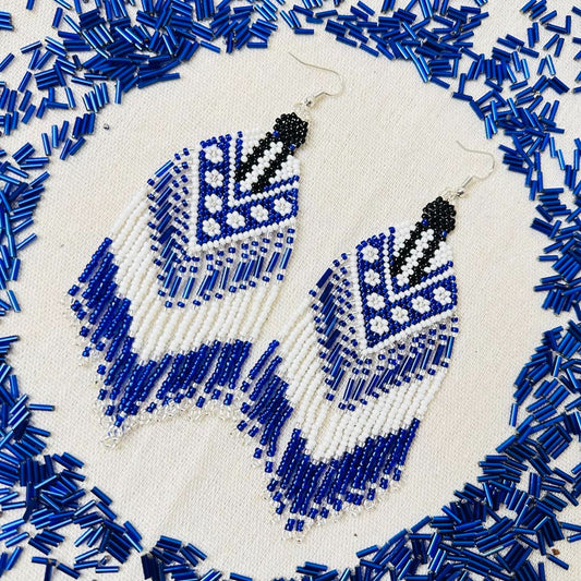 Native Feather Beaded Drop Earrings – Handmade Black & Blue Color