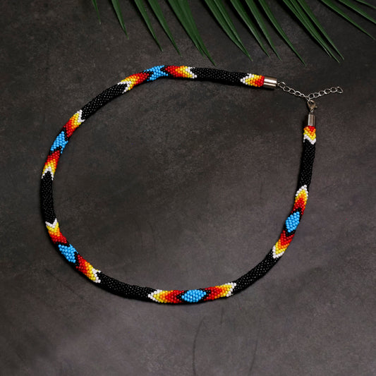 Sunset Harmony Beaded Necklace – Red, Orange, Yellow & Black Beads