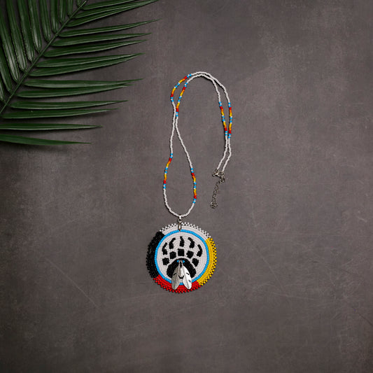 Bear Paw Handmade Beaded Wire Necklace Pendant Unisex With Native American Style