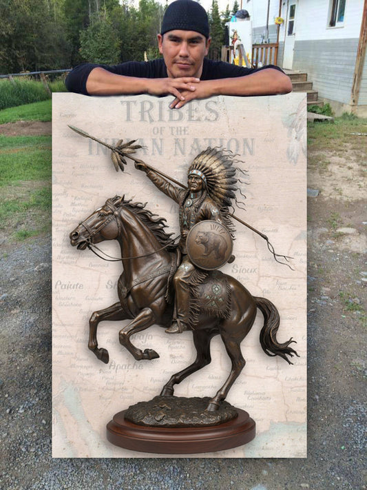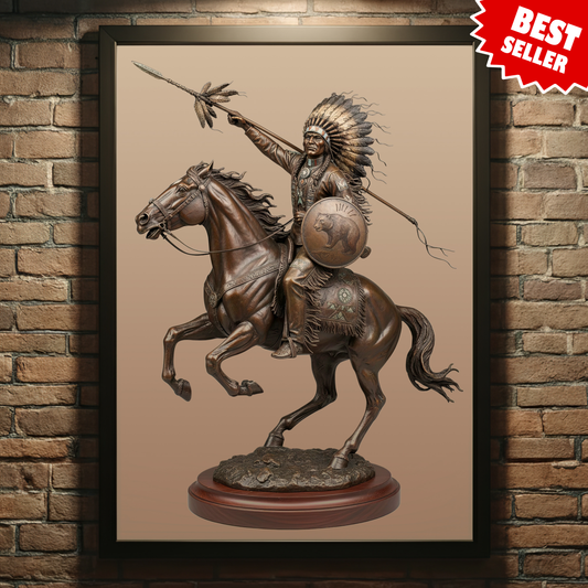 Native American Warrior on Horseback Bronze Art - Poster & Canvas