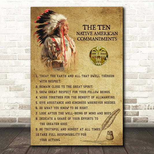 The Ten Native American Commandments Of Chief - Poster & Canvas