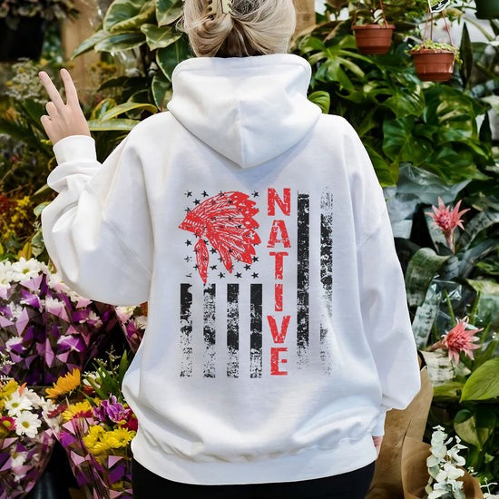Indigenous American Flag T-Shirt – Native Pride Red Headdress - Two sides - Unisex T-Shirt/Hoodie/Sweatshirt