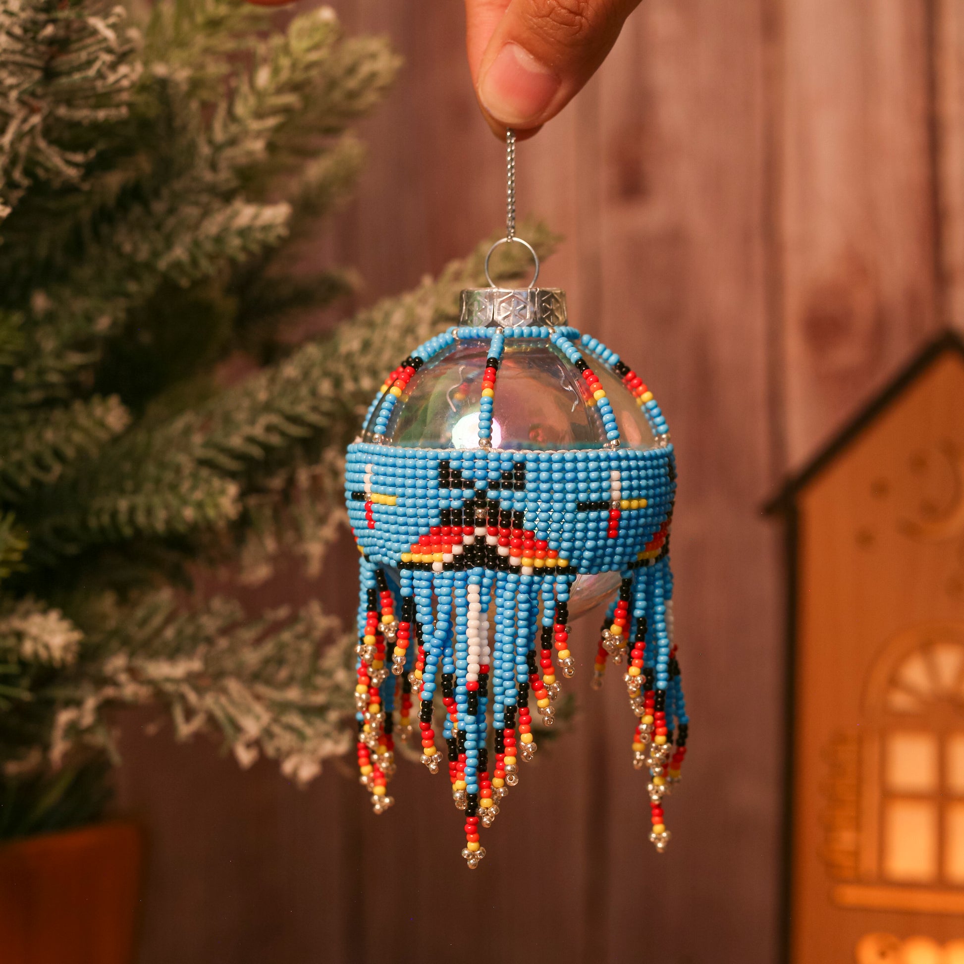Native-Inspired Beaded Ornament Set – Handmade Tribal Holiday Decor