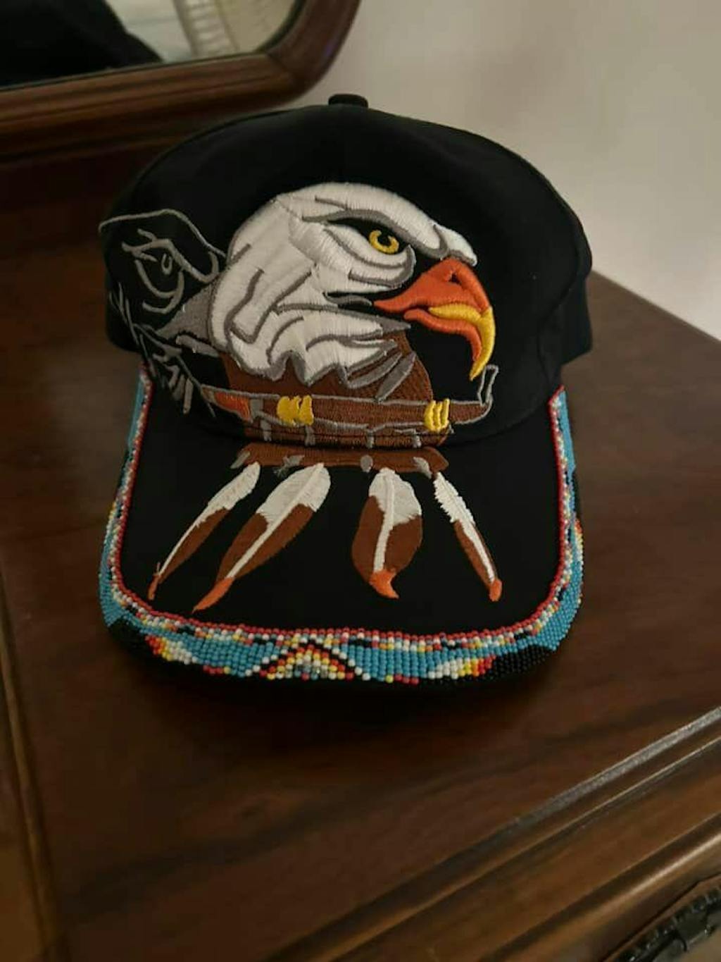 MMIW Feathers Cotton Unisex Baseball Cap With Beaded Patch Brim Native American Style