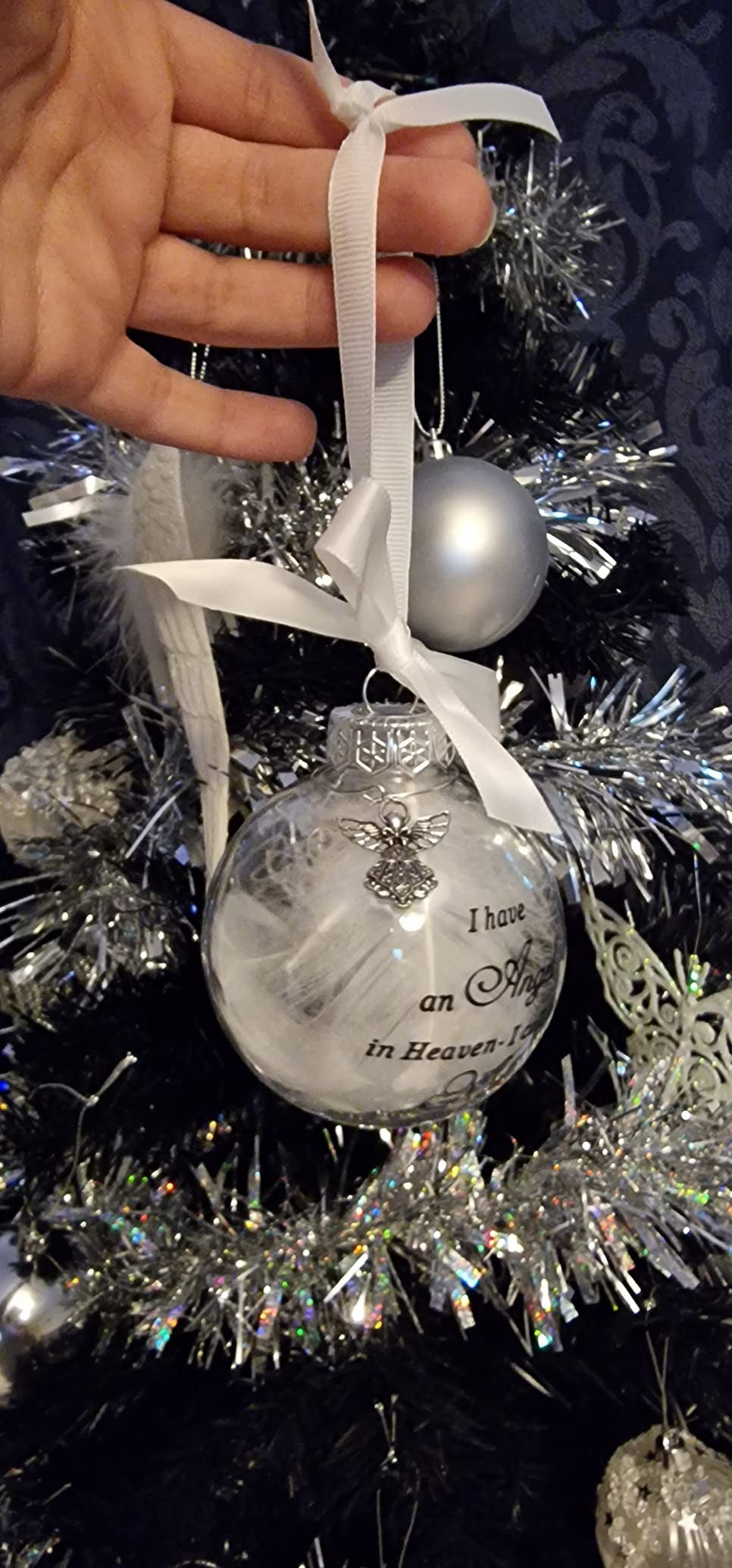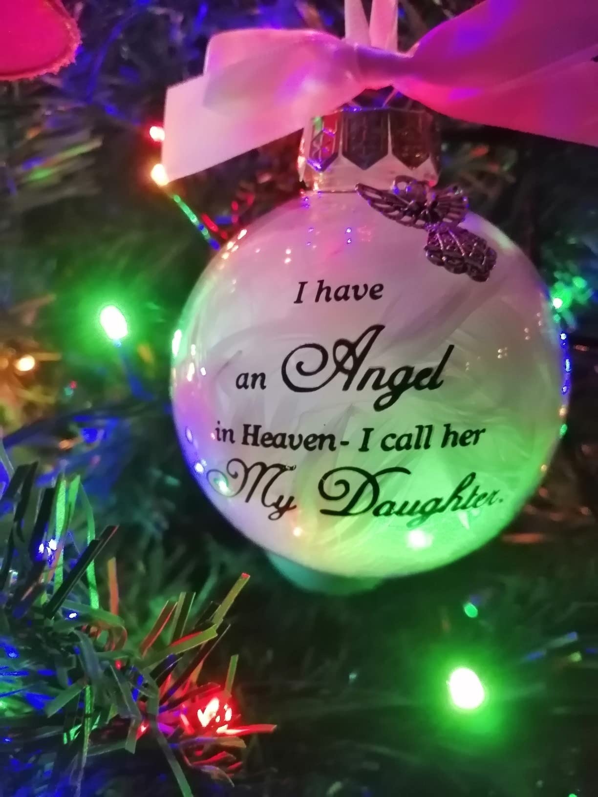 Meaningful keepsake, simple yet touching. Clear lettering and a lovely little angel charm. Looks warm and heartfelt when hung on the tree.