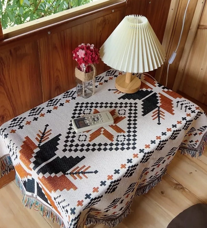 Inspired by Nature & Native Heritage — This blanket celebrates the beauty of indigenous-inspired artistry and earthy boho design. Each pattern echoes the warmth of tradition, making it a meaningful accent for your home this holiday season.