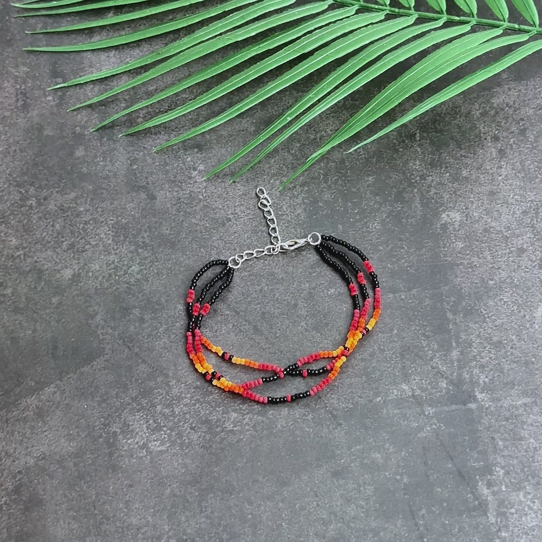 Sunset Harmony Beaded Bracelet – Bold Red, Orange, Yellow, and Black Strands