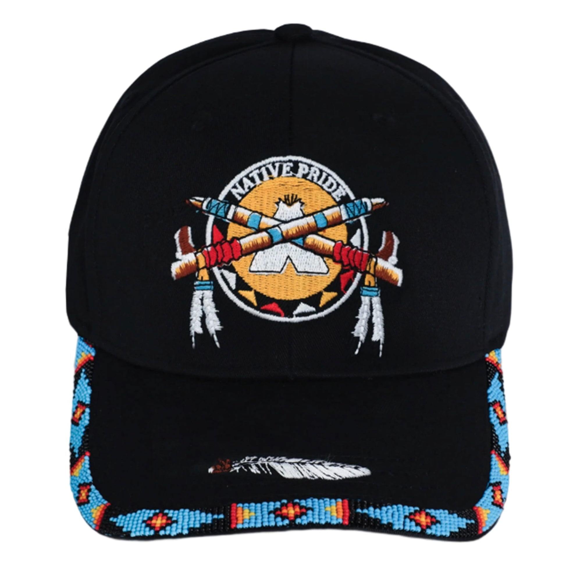 Native Pride Emblem Embroidered Beaded Baseball Cap with Brim Unisex Native American Style
